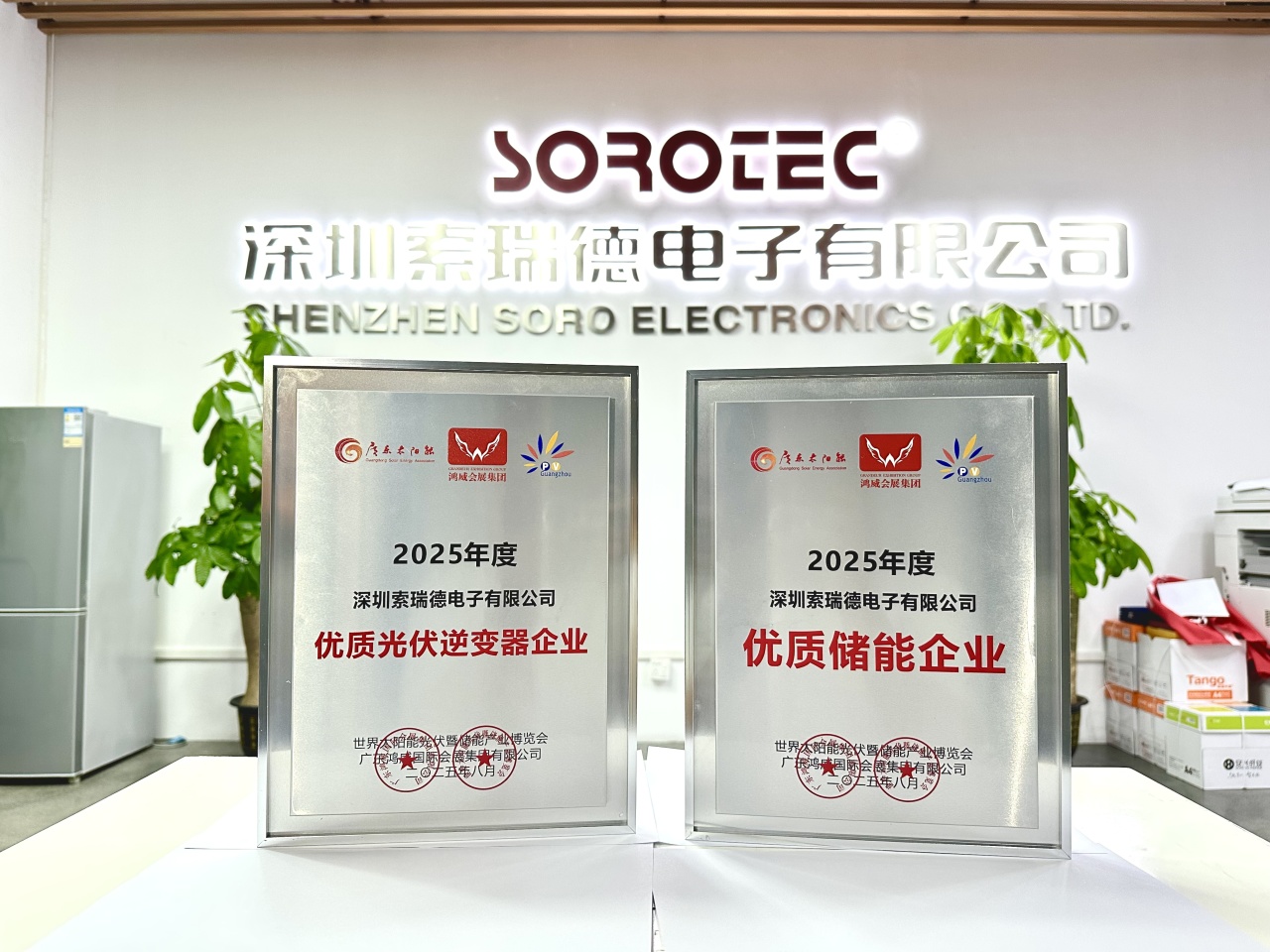 在2025世界太阳能光伏暨储能产业博览会上,索瑞德凭借卓越的技术创新与成熟的解决方案,一举斩获“2025优质储能企业”“2025优质光伏逆变器企业”行业两大权威奖项。